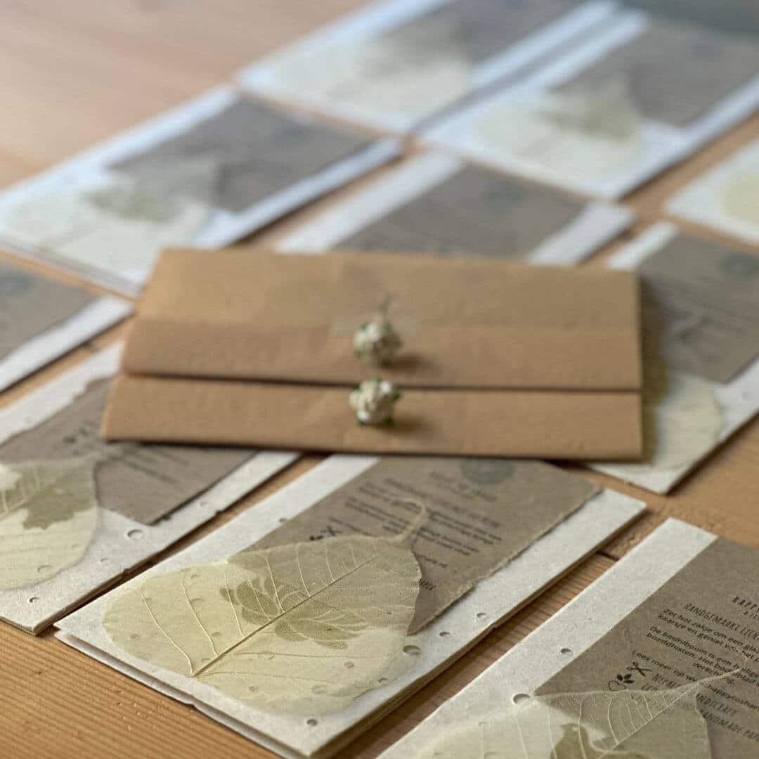 - Eén lichtzakje van naturelkleurig handgeschept papier met gedroogd bodhiblad.